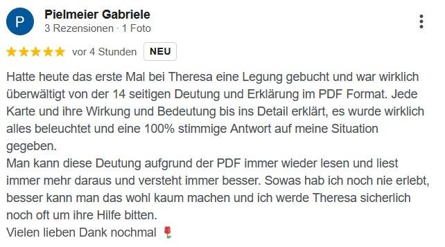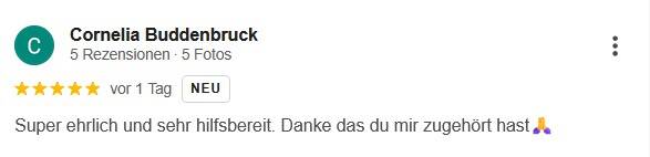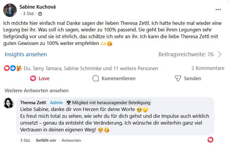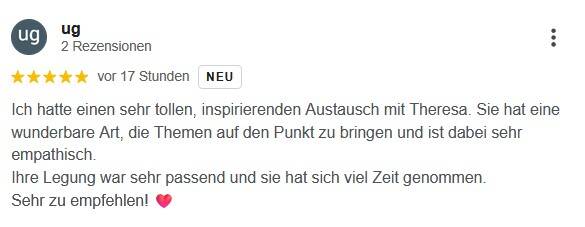 Die auf dieser Seite veröffentlichten Rückmeldungen stammen ausschließlich von Kundinnen und Kunden, die meine Angebote tatsächlich in Anspruch genommen haben. Sie geben einen authentischen Einblick in die Qualität, Arbeitsweise und Wirkung meiner Readings und Begleitungen. Transparenz, Verlässlichkeit und ein respektvoller Umgang stehen für mich an erster Stelle.