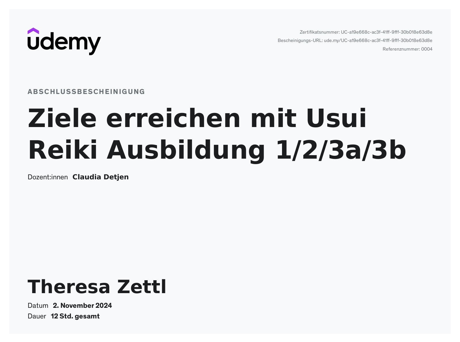 - Usui Reiki Grad 1, 2, 3a & 3b (Meister & Lehrer)